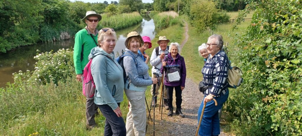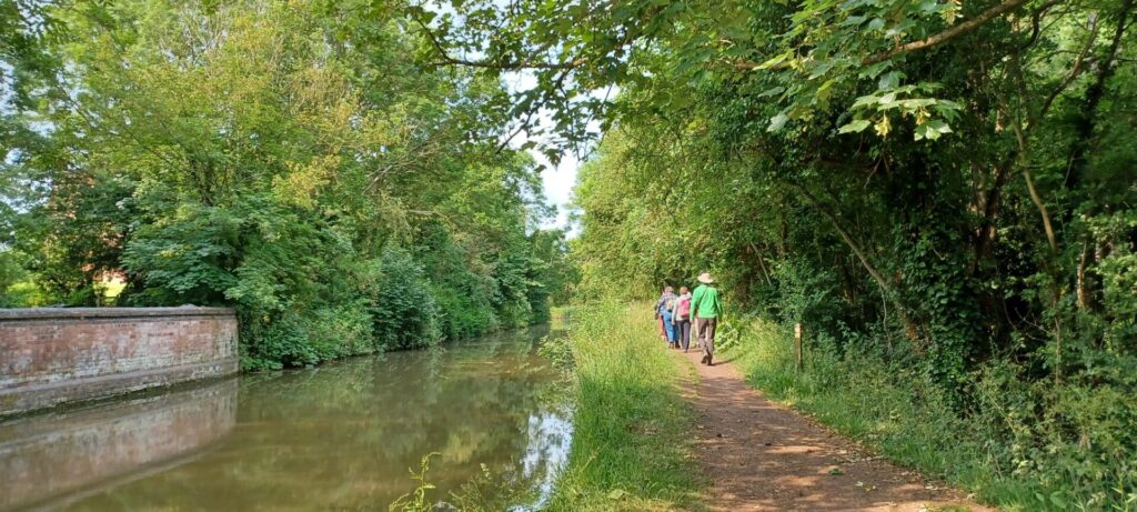 Rosemarie led a lovely walk from Salwarpe church down the Droitwich canal whose banks were lined by reeds and fishermen. Sylvia using her Merlin bird call detection app identified the very noise call of the common reed warbler, blackcaps and white throated warblers plus the usual suspects. Turning away from the canal we walked across fields through woods and along quiet country lanes. In the distance we heard a cuckoo and overhead a buzzard was soaring. We finished our walk with a well-earned drink and lunch at the Copcut Elm.