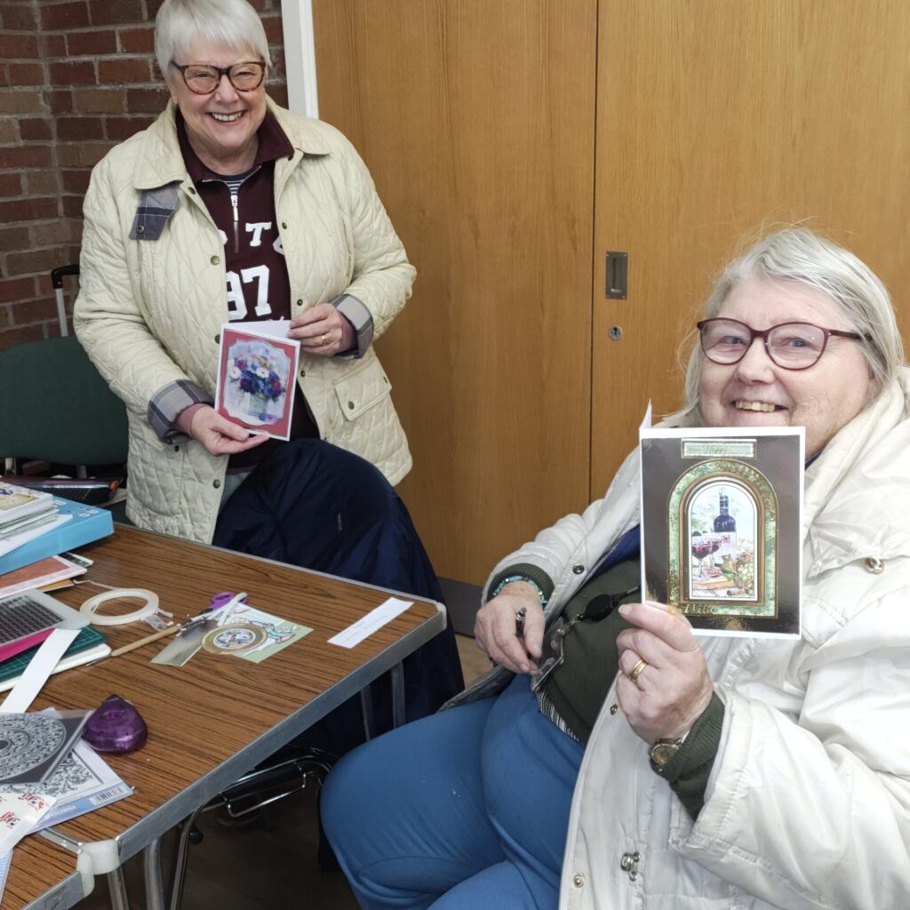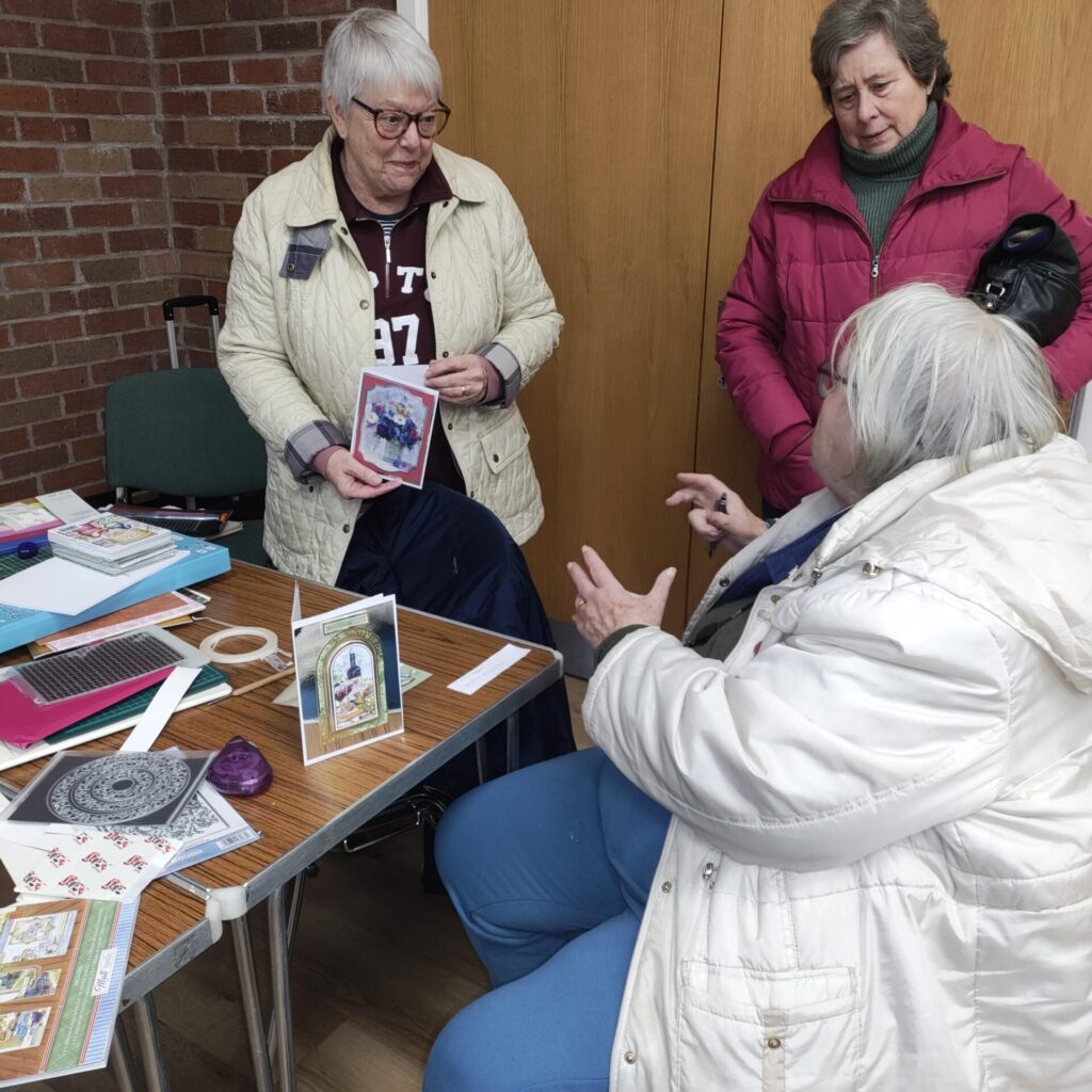 Do you enjoy crafting with paper or cardboard already? Maybe you have all the kit tucked away at home untouched and simply need some motivation to get going? Or perhaps it’s a craft you’re curious to have a go at? We are a mixed ability group with me as a beginner to others that have made cards for several years. Therefore, cater for everyone's ability. Please feel free to come and join in. A big thank you to Mo Thomas who has agreed to be my helper in the group.